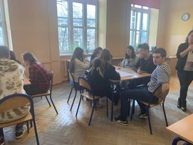 W ramach współpracy XLIII Liceum Ogólnokształcącego z Instytutem Socjologii Uniwersytetu Jagiellońskiego 13 marca 2022 roku odbyło się pierwsze z cyklu spotkań w ramach projektu „Edukacja aksjologiczna w przestrzeni trudnego dziedzictwa”. Hasłem przewodnim spotkania było pytanie „Po co nam mur?” Zajęcia dotyczyły muru rozumianego dosłownie, historycznie i metaforycznie. Warsztaty z uczniami klasy 1a poprowadzili: prof. dr hab. Hubert Kaszyński, pani Olga Maciejewska oraz pani Eryka Sitko. Opiekę ze strony Szkoły nad młodzieżą sprawowały: pani dyrektor Bożena Kiszniewska i pani Ewa Misztal.