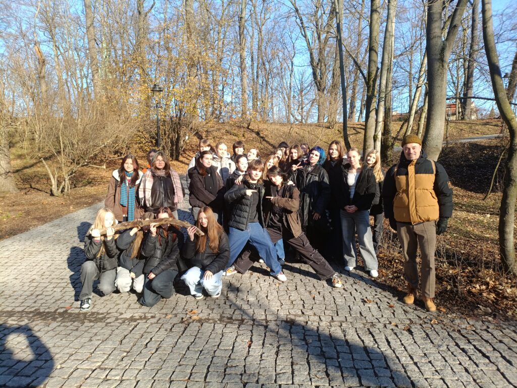 W dniu dzisiejszym klasa 1b, pod opieką dr. Roberta Warchała, udała się na jesienny spacer do parku im. Wojciecha Bednarskiego w Krakowie. Jesień ukazała się w swojej późnej odsłonie — większość liści już opadła, tworząc miękki dywan pod stopami i odsłaniając gałęzie drzew przygotowanych do zimy. Trasa prowadziła malowniczymi ścieżkami wśród podgórskich skałek, które w tej porze roku nabrały surowego, ale wyjątkowego charakteru. Uczniowie obserwowali zmiany zachodzące w przyrodzie. W ramach spaceru tworzyli także jesienne impresje, inspirowane naturą w jej spokojniejszej, wyciszonej fazie.