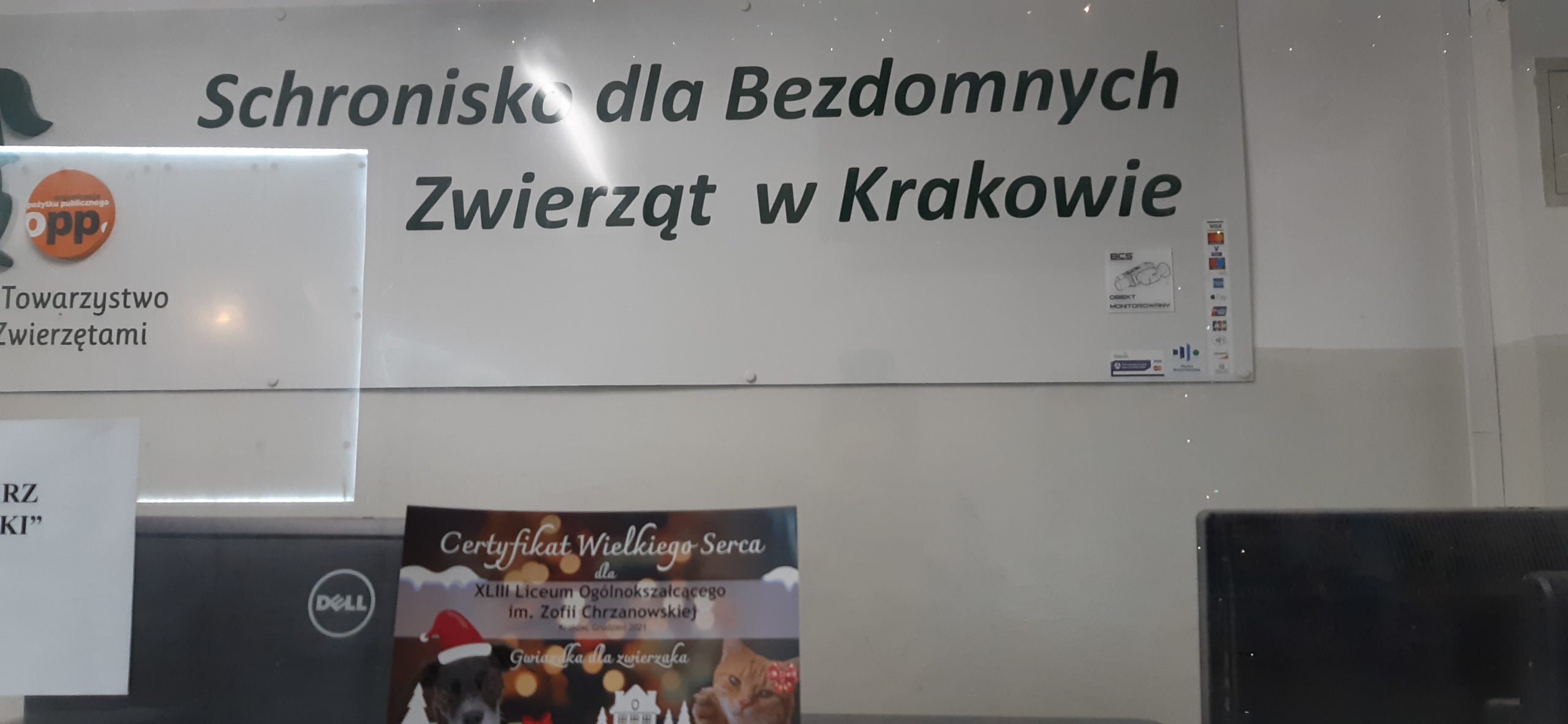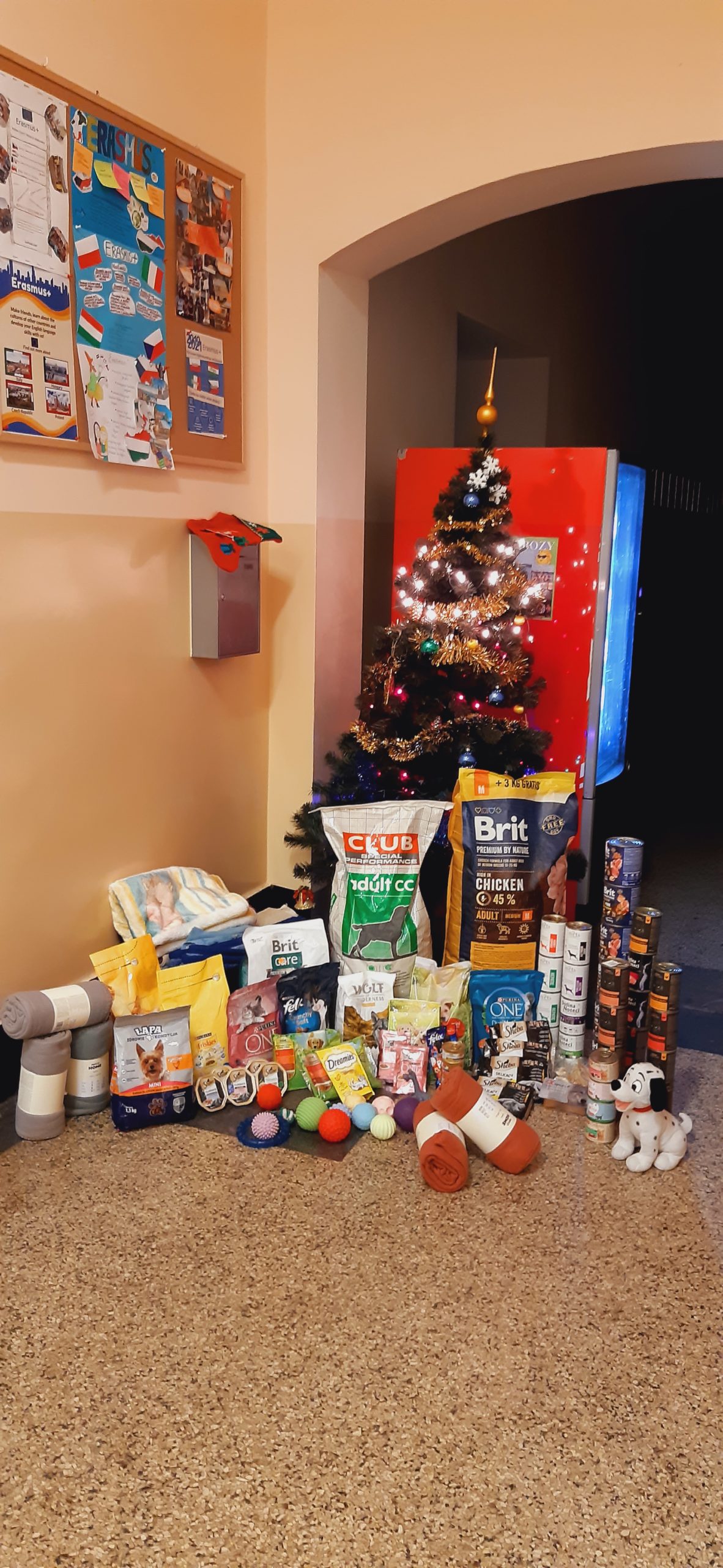 Dzięki Wam, kochani uczniowie, zwierzaki z krakowskiego schroniska przy ul. Rybnej 3 będą mieć smaczne, ciepłe i wesołe Święta. Dzięki sprawnej pracy szkolnego Samorządu dziś do naszych czworonożnych przyjaciół trafiło mnóstwo kilogramów karmy, koce, ręczniki i zabawki, które przynieśliście w ostatnim czasie do Szkoły.