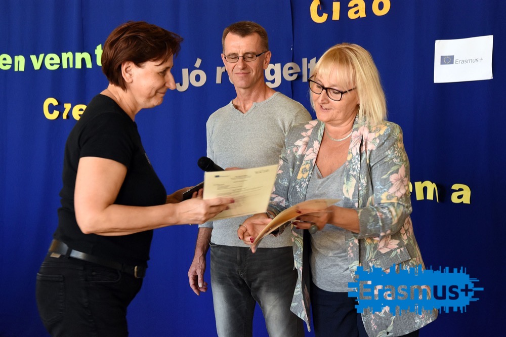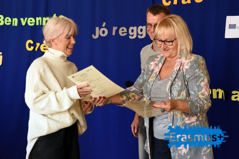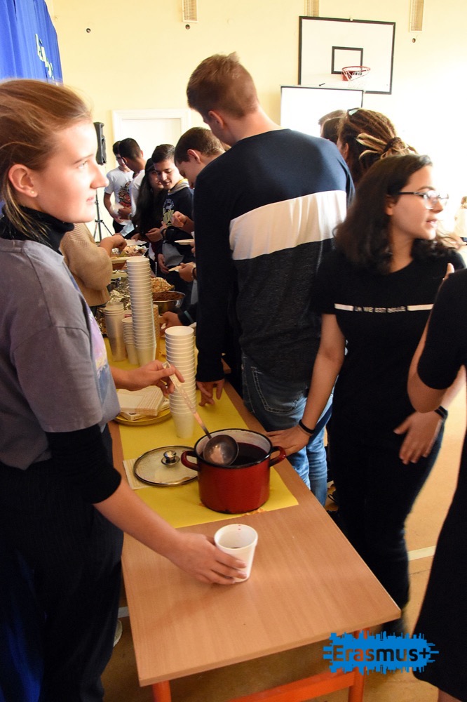 Następnie w murach naszej Szkoły odbyło się spotkanie podsumowujące, w czasie którego Pani Dyrektor Bożena Skowronek wręczyła certyfikaty uczestnictwa w projekcie Erasmus+, były pożegnalne przemówienia, a na koniec goście mieli okazję spróbować specjałów polskiej kuchni przygotowanych przez naszych uczniów i ich rodziców. Największe uznanie zyskały pierogi i krokiety.