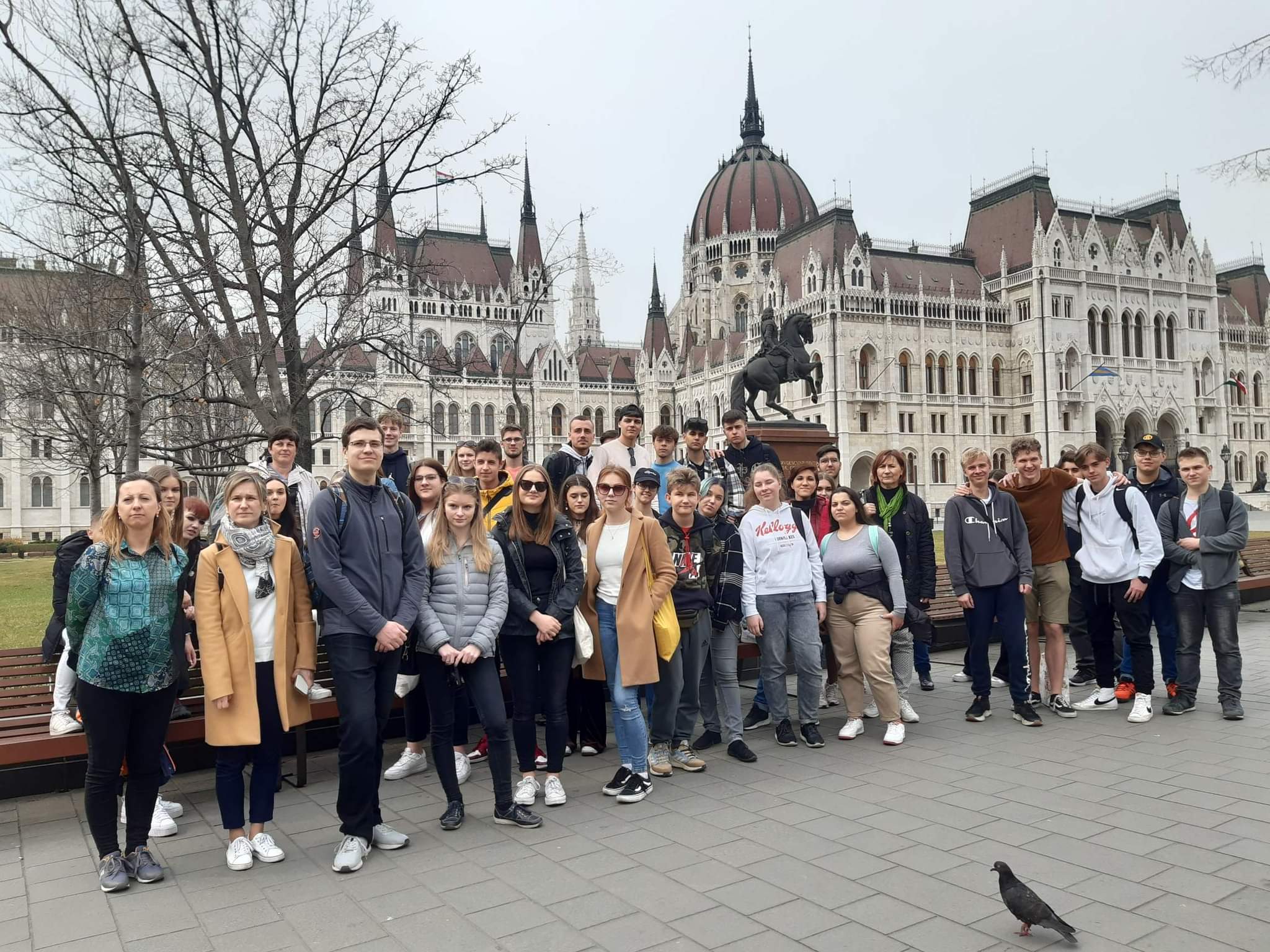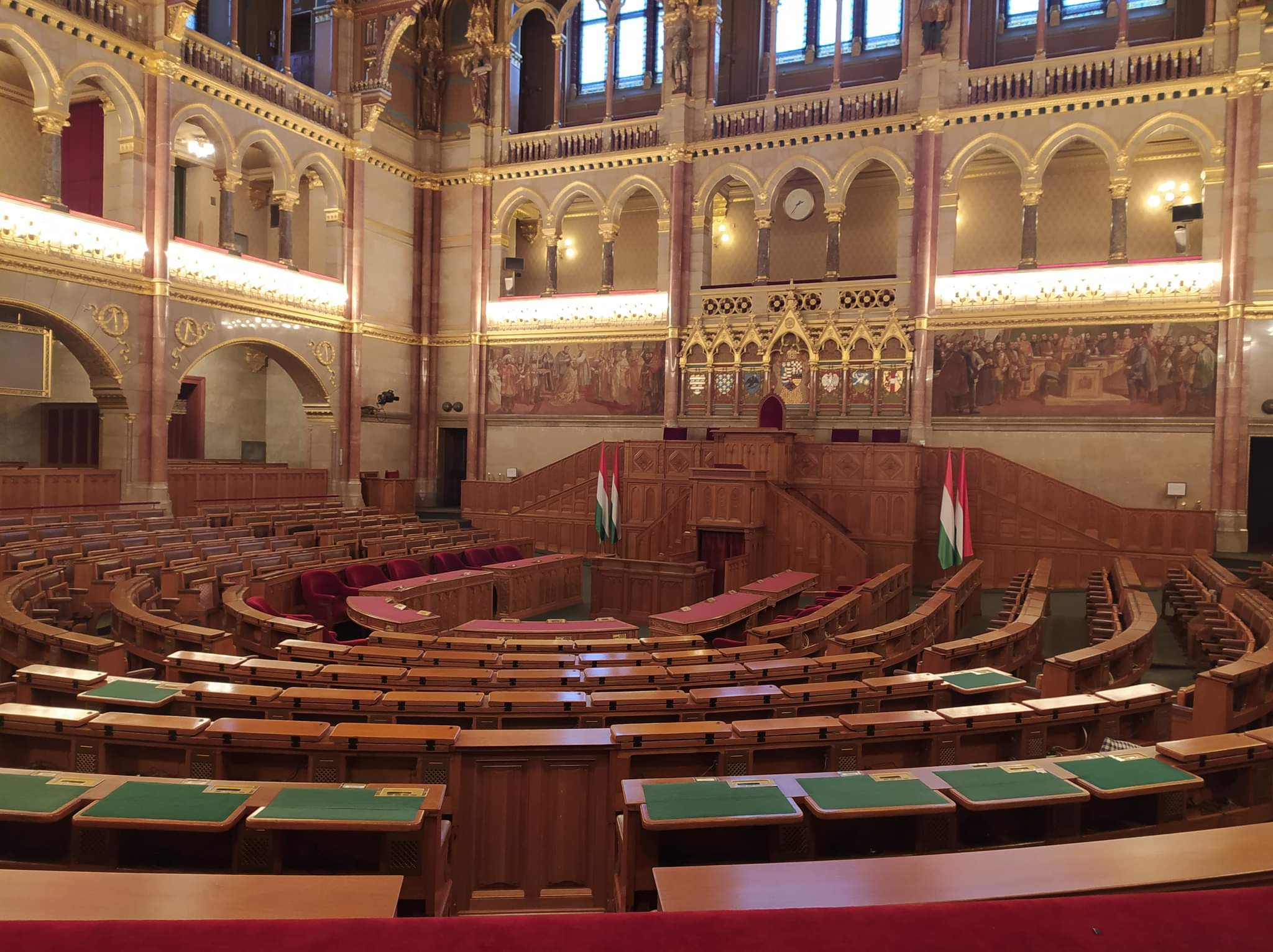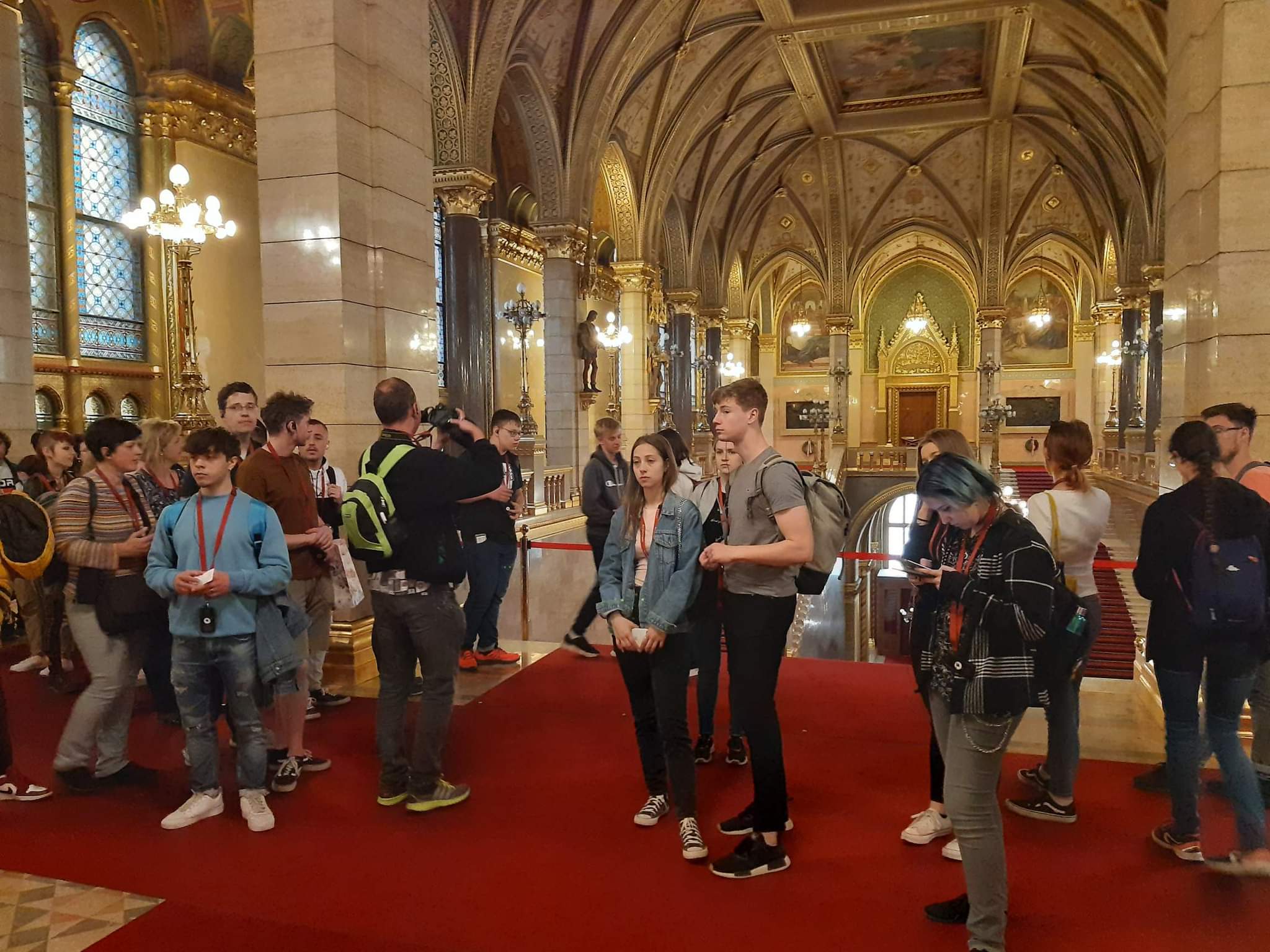 Wszyscy z dobrym humorem zebraliśmy się na zbiórkę po czym wyruszyliśmy komunikacją miejską do węgierskiej szkoły. Tam powitali nas uczniowie z pustymi kartkami i farbami. Jednak przed tym jak dostaliśmy informacje o zadaniu, które mieliśmy wykonać w grupach powiedzieli, że zrobimy Kahoota o tematyce dnia poprzedniego. Po jej skończeniu przeszliśmy do głównego zadania – uczniowie wyjaśnili nam na czym polega dzisiejsze wyzwanie. Rozdali nam po jednym słowie a my z wiedzą którą zyskaliśmy w bibliotece Széchényiego mieliśmy jak najpiękniej udekorować pierwszą literę. Kiedy czas naszej pracy dobiegł końca każda z grup powiesiła na tablicy swoje słowo i w połączeniu wyszło jedna zdanie „The Golden Trangel Of Reneissance Beatrice Of Naples Matthias Cornvinus Vladislaus II”. Po południu, zwiedzając parlament, dowiedzieliśmy się wielu ciekawych rzeczy takich, jak legenda o skrzywionym krzyżu na koronie królewskiej oraz zobaczyliśmy między innymi sale obrad oraz pięknie ozdobione sufity.