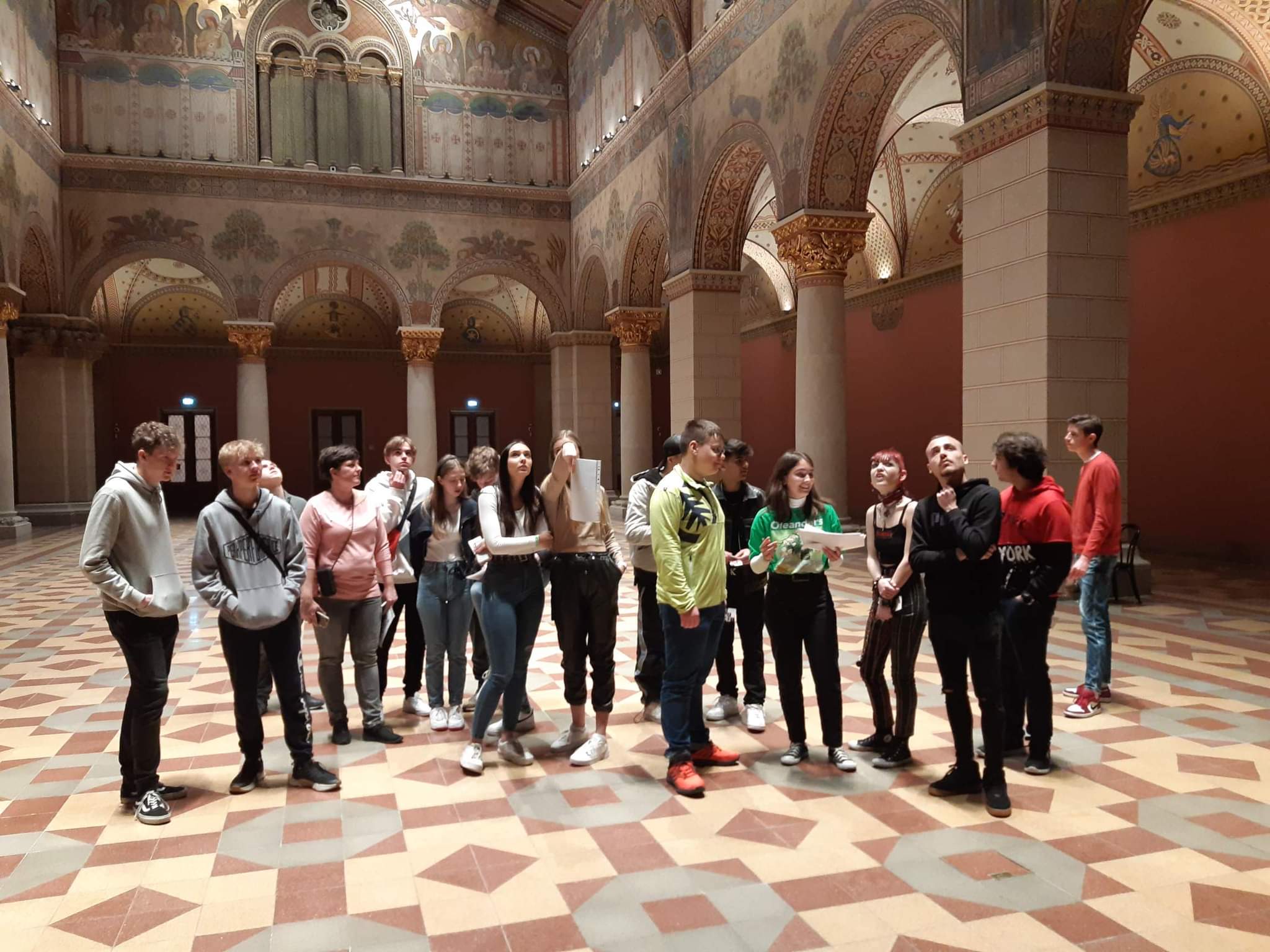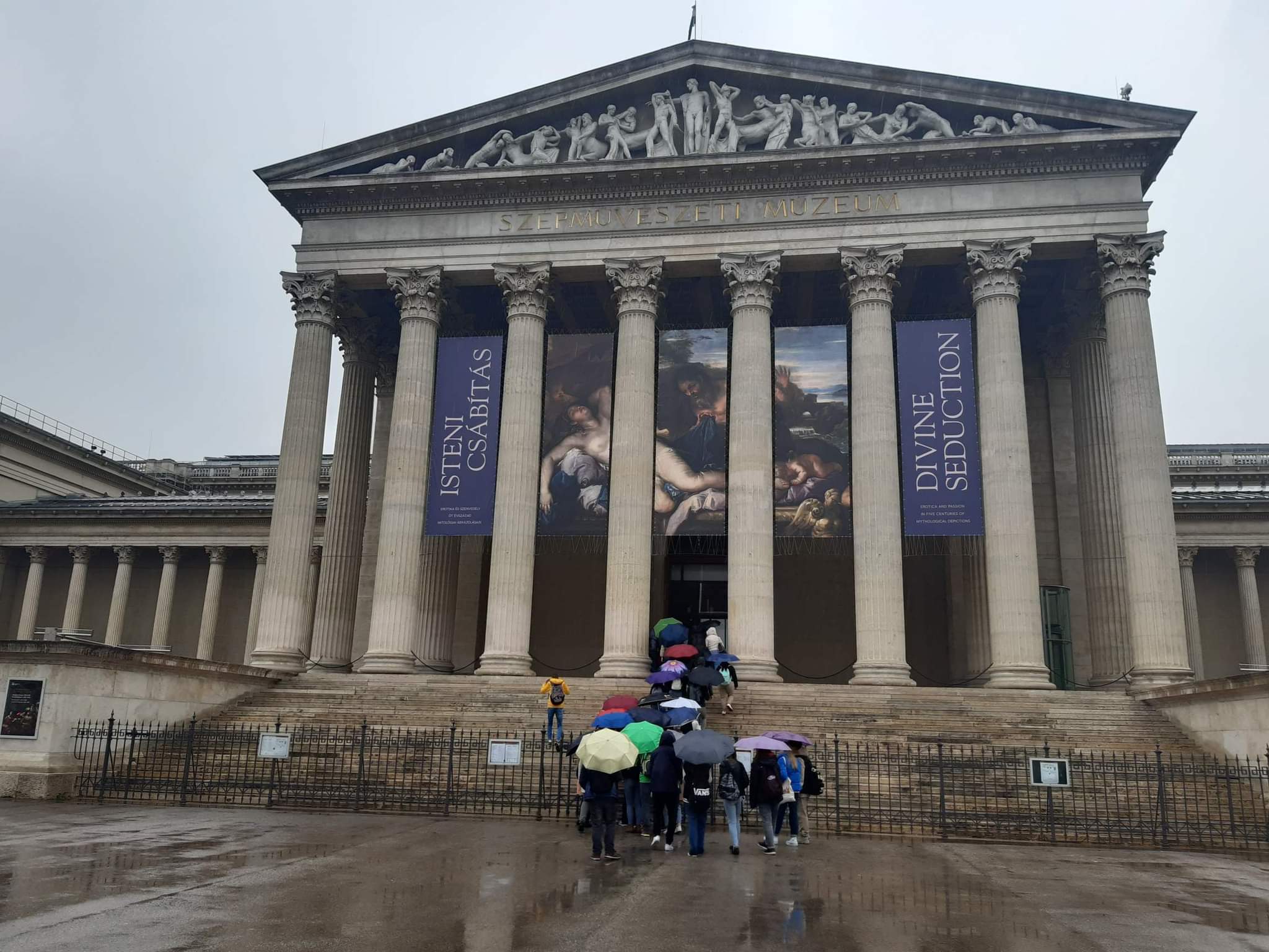 Przed planowanym zwiedzaniem Muzeum sztuk pięknych zatrzymaliśmy się przy Placu Bohaterów, gdzie opowiadano nam o powstaniu Węgier. Dowiedzieliśmy się, że tereny Węgier kiedyś należały do dawnych rodów, które prowadziły ekspansję na wschód Europy. Zwiedzanie muzeum zajęło 2 godziny, oprócz oglądania obrazów i zabytków z dawnych wieków mieliśmy też grę polegającą na dowiadywaniu się historii na obrazach oraz ich rozpoznawania. Większość obrazów dotyczyło religii chrześcijańskiej i wczesnego średniowiecza na wschodzie Europy.