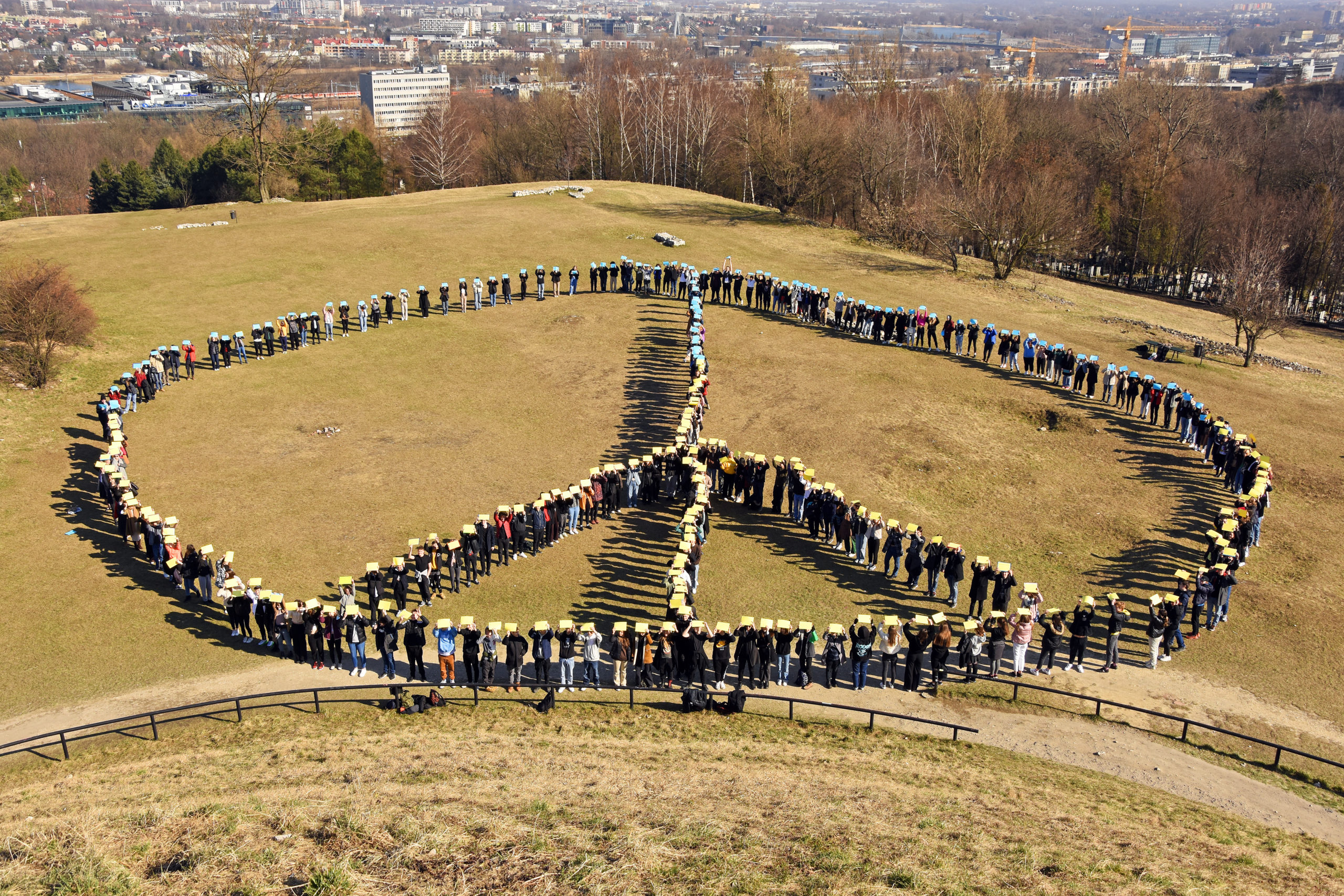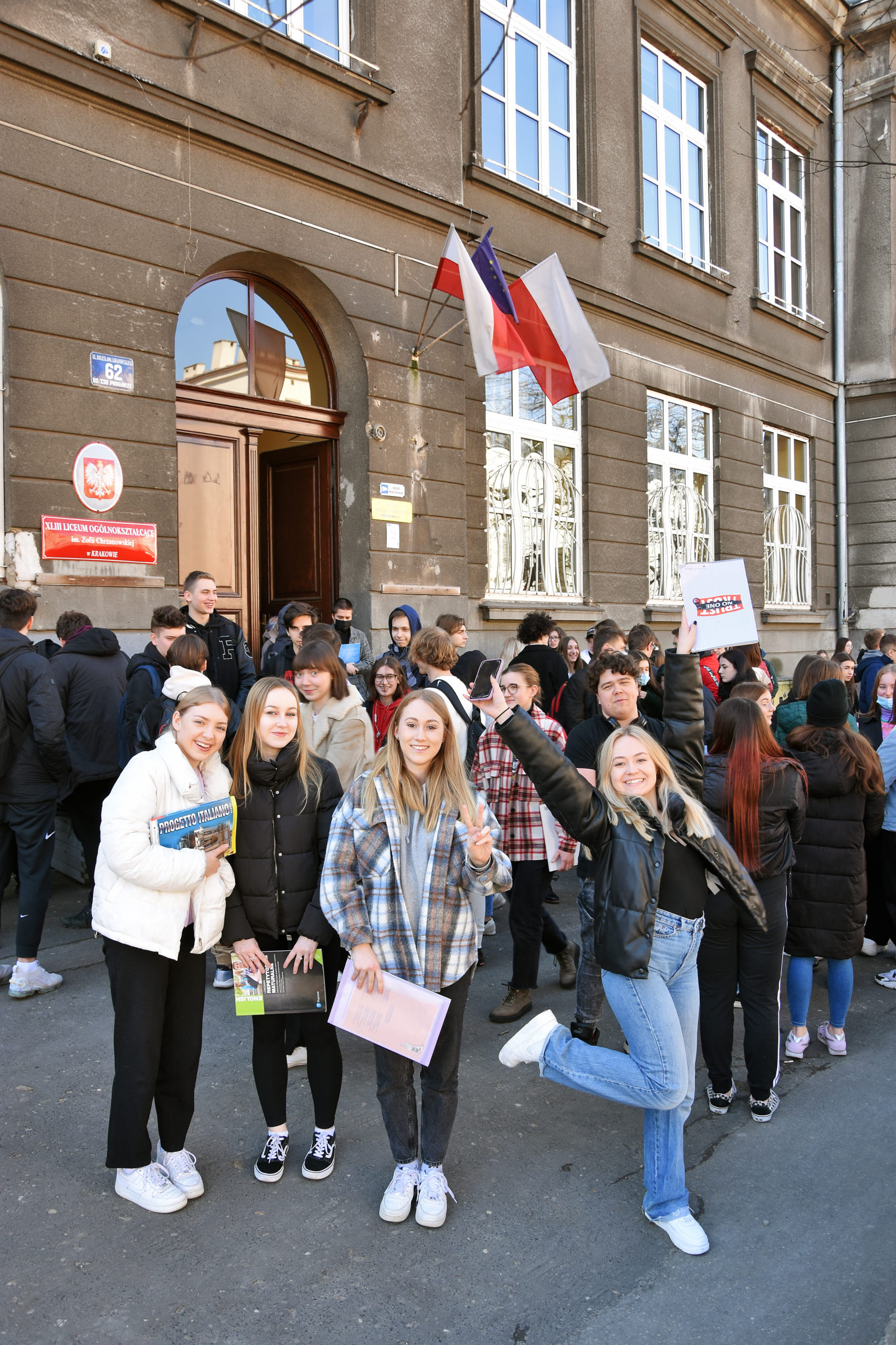 14 marca 2022 roku młodzież XLIII Liceum Ogólnokształcącego wzięła udział w akcji, której celem było okazanie solidarności Ukrainie wobec brutalnej napaści Rosji na to suwerenne państwo. Inicjatorem akcji był pan prof. Jacek Czaplak. Sam pomysł dotarł do naszego Liceum z hiszpańskiej szkoły, z którą współpracujemy.