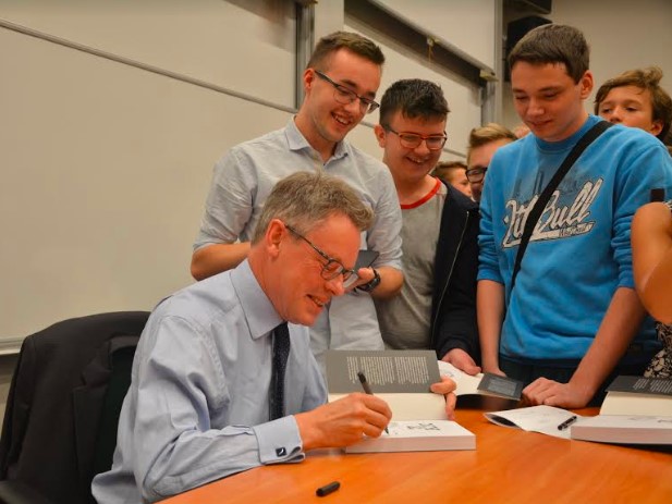 Dermot Turing – autor książki „XYZ Prawdziwa historia złamania szyfru Enigmy”, spotkał się m.in. z krakowskimi uczniami, którzy nie tylko mieli okazję wysłuchać poświęconych historii Enigmy wykładów: prof. Zbigniewa Błockiego, dr. Marka Grajka oraz sir Dermota Turinga, ale także otrzymali książkę angielskiego autora z jego autografem.