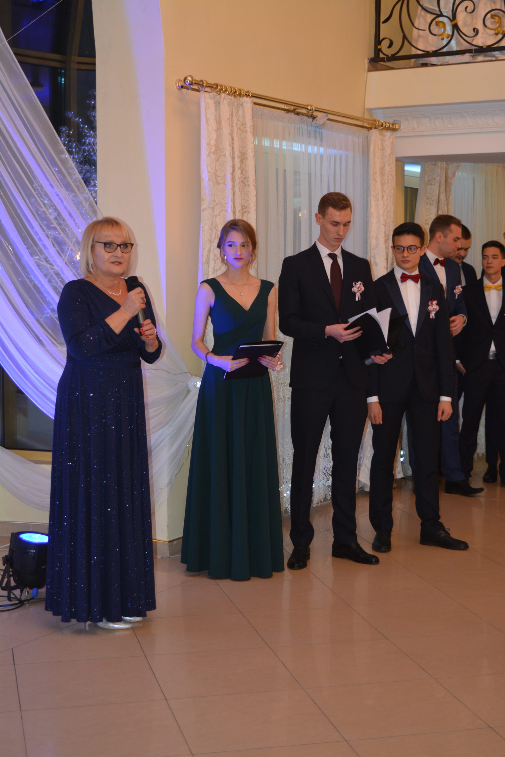 Bal otworzyła uroczystym przemówieniem Pani Dyrektor, następnie uczniowie złożyli na ręce Profesorów podziękowania za trud włożony w przygotowanie do pierwszej w historii Szkoły matury (zapewne ten egzamin będzie równie ważny dla uczniów, jak i ich Nauczycieli).