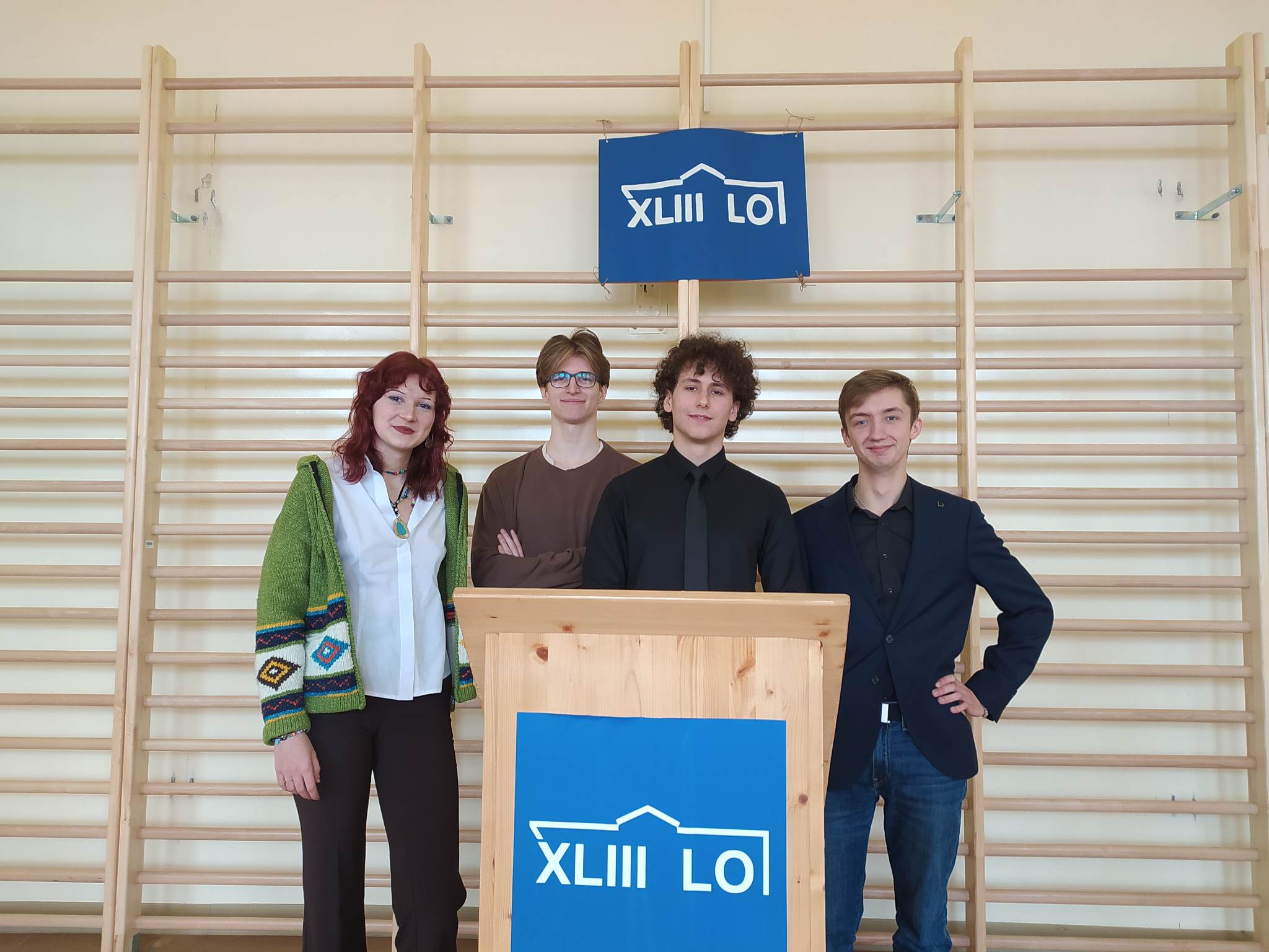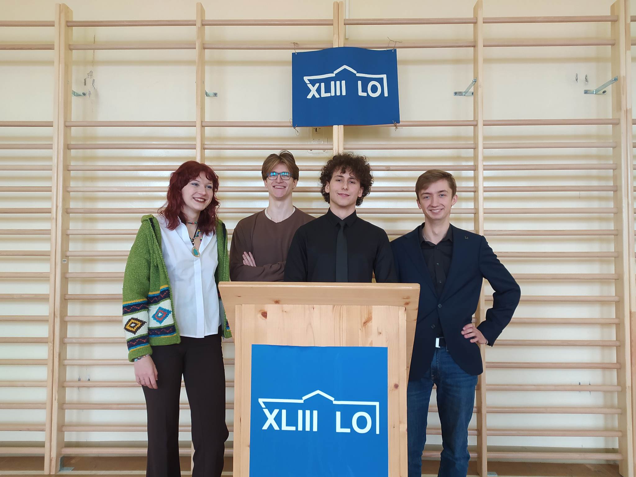 Uczniowie reprezentujący XLIII LO w Szkole Debaty to: Marcin Dąbrowski 4A Paweł Dziób 4A Urszula Klimas 2B Bartosz Pałka 2A