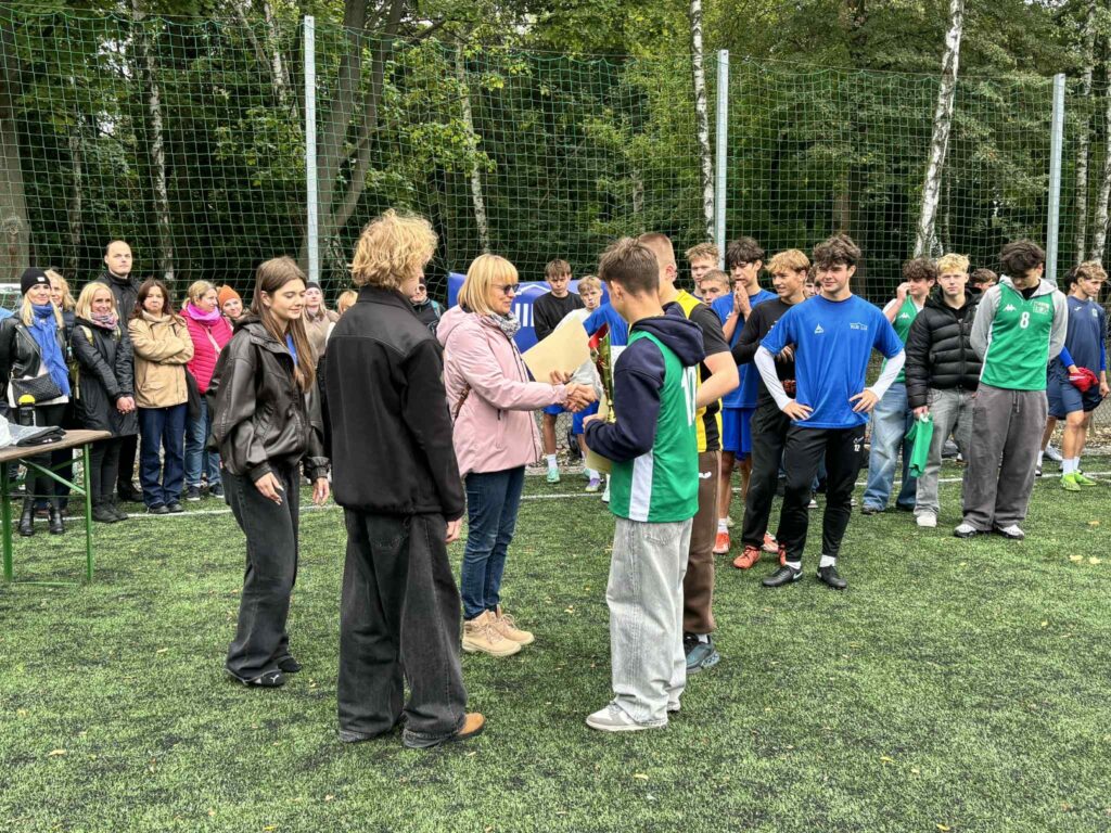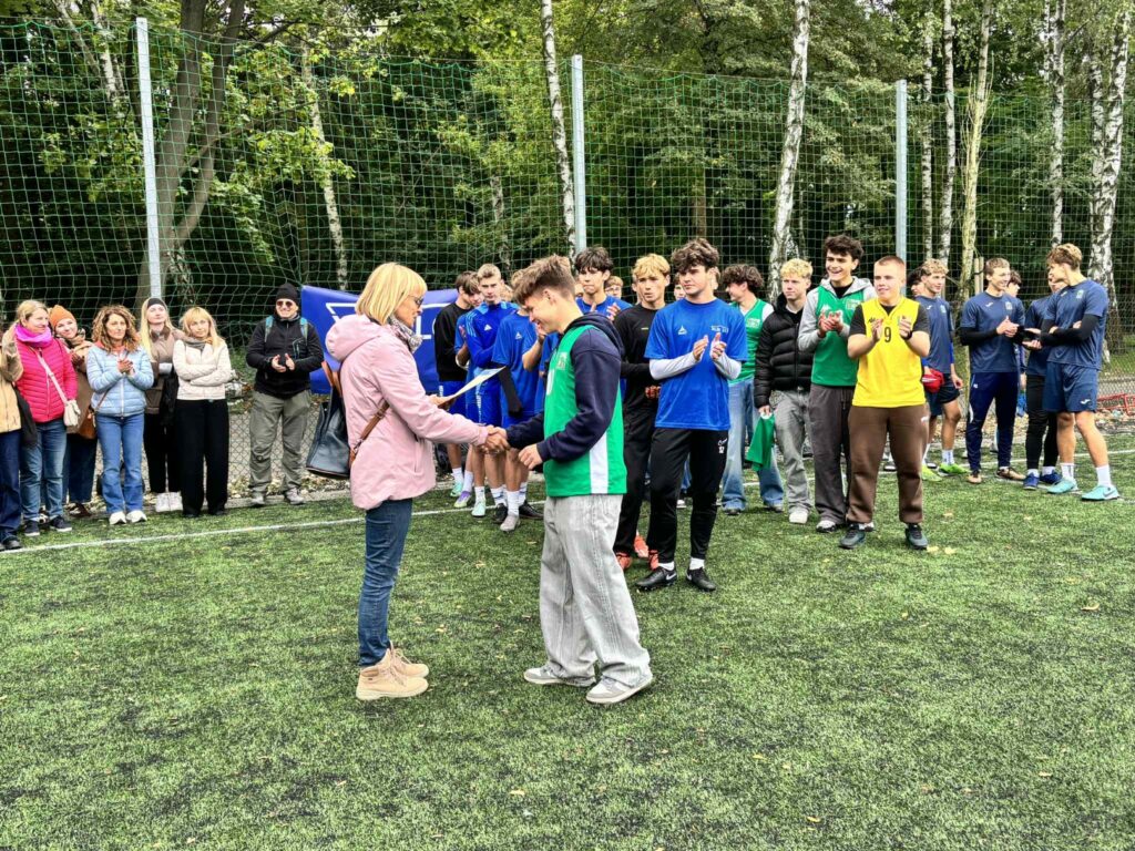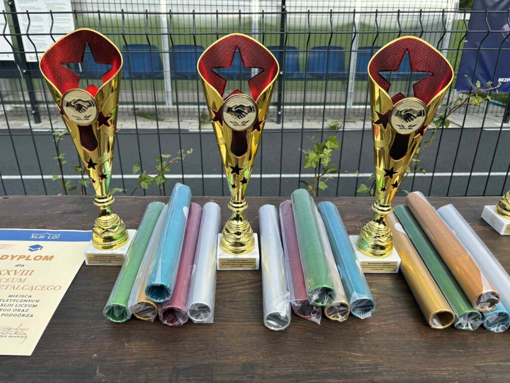 W dniu 25 września 2025 roku dzięki wsparciu Rady Dzielnicy XIII Podgórze, odbył się piknik sportowy z okazji 120-lecia naszego liceum oraz 110-lecia połączenia Podgórza z Krakowem. Centrum Sportu Parkowa w Krakowie na jeden dzień stało się areną zmagań sportowych podgórskich liceów. Mieliśmy przyjemność jako gospodarz rywalizować w biegach lekkoatletycznych dziewcząt oraz turnieju piłki nożnej chłopców z reprezentacjami dwóch sąsiednich liceów, IV Liceum Ogólnokształcącego im. Tadeusza Kościuszki oraz XXVIII Liceum Ogólnokształcącego im. Wojciecha Bednarskiego. W trakcie gdy zawodnicy walczyli o najlepsze wyniki w swoich dyscyplinach na trybunach rozbrzmiewał gorący doping prowadzony przez zgromadzonych uczniów i nauczycieli. Podczas pikniku oprócz zmagań sportowych uczestnicy imprezy mieli okazję wziąć udział w szkoleniu z pierwszej pomocy przedmedycznej prowadzonej przez Straż Pożarną oraz porozmawiać z funkcjonariuszami Straży Miejskiej na temat profilaktyki i bezpieczeństwa w życiu codziennym oraz internecie.