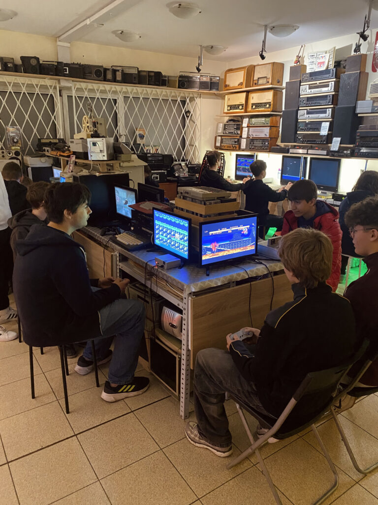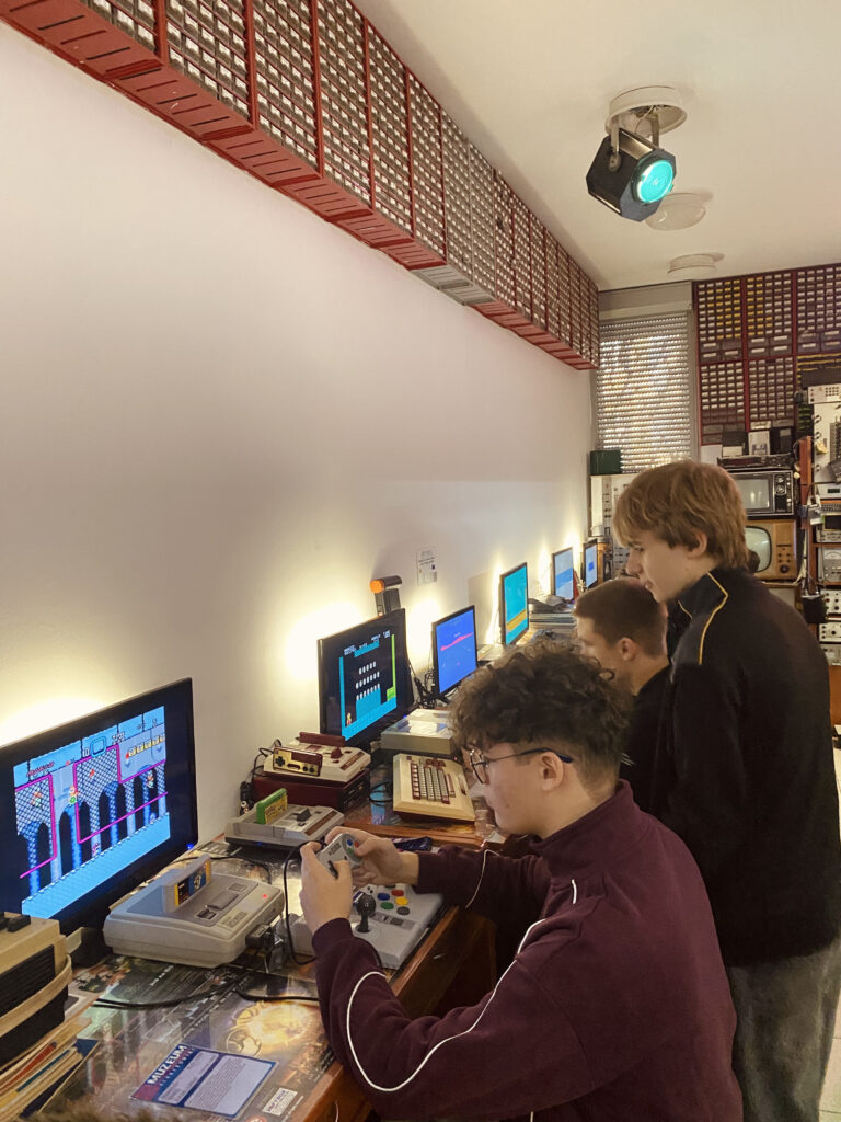 20 października uczniowie klasy 1A wzięli udział w wyjściu edukacyjno-integracyjnym pod opieką prof. Magdaleny Kuśmierz. Pierwszym punktem programu była wizyta w Muzeum Elektroniki w Krakowie, gdzie uczestniczyli w warsztatach „Retroinformatyka i historia polskiego gamingu”. Uczniowie poznali początki gier wideo oraz rozwój dawnych technologii komputerowych, zobaczyli sprzęt marek takich jak Nintendo, Sega czy Atari, a także samodzielnie zagrali na kultowych konsolach sprzed lat.